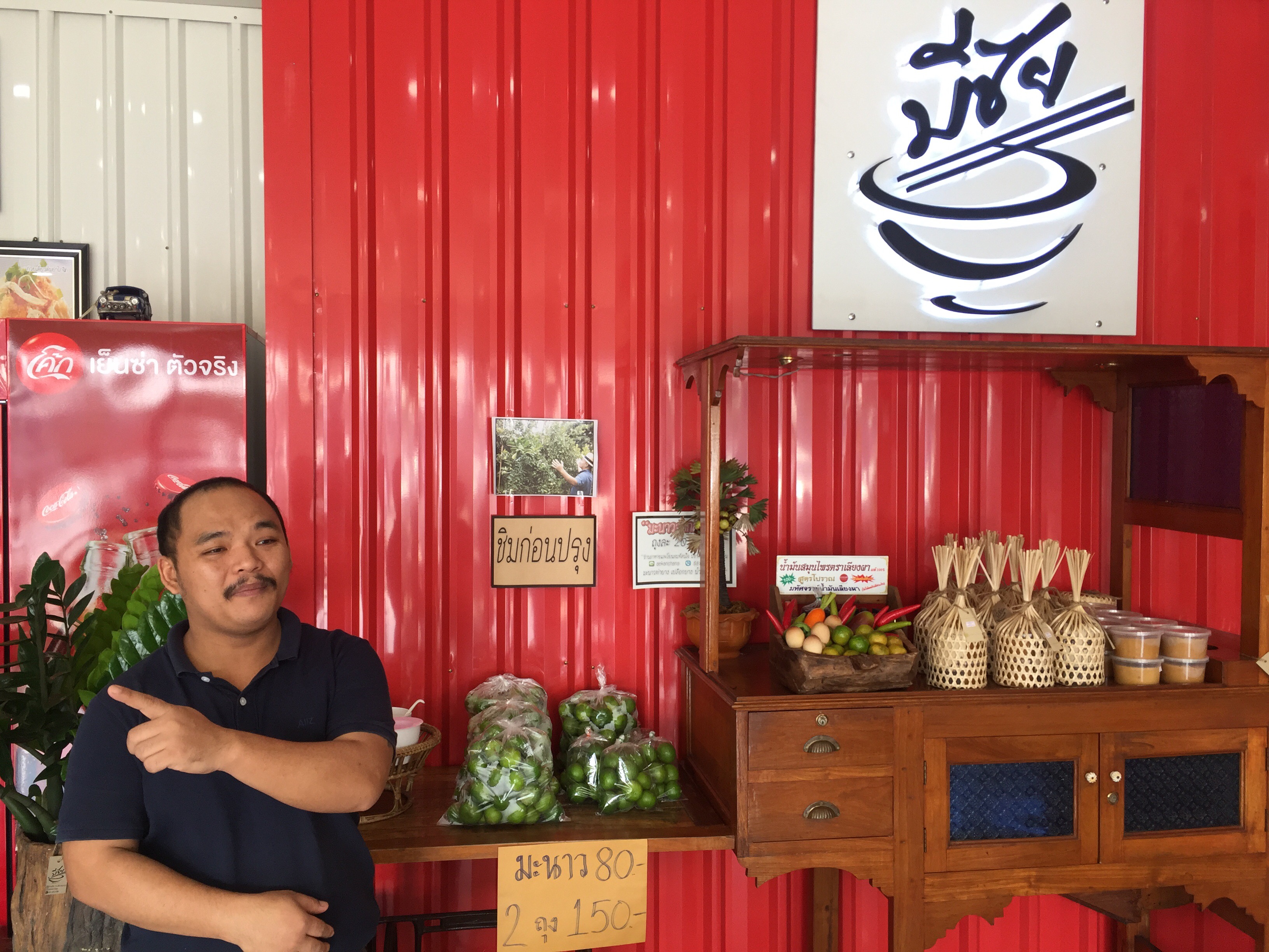 ในร้านประดับด้วยป้ายโฆษณาเก่า ที่เจ้าของขยันเก็บสะสม บางชิ้นหายากมีราคาหลายหมื่นบาท แบ่งขายให้คนที่สนใจจริง ทำให้ร้านมี สีสรร มีเสน่ห์น่าสนใจ แถมยังมีมุมของฝาก มะนาว น้ำตาลสด น้ำตาลปึก ให้ลูกค้าช่วยกันอุดหนุนผลผลิตของชาวสวนเมืองเพชร