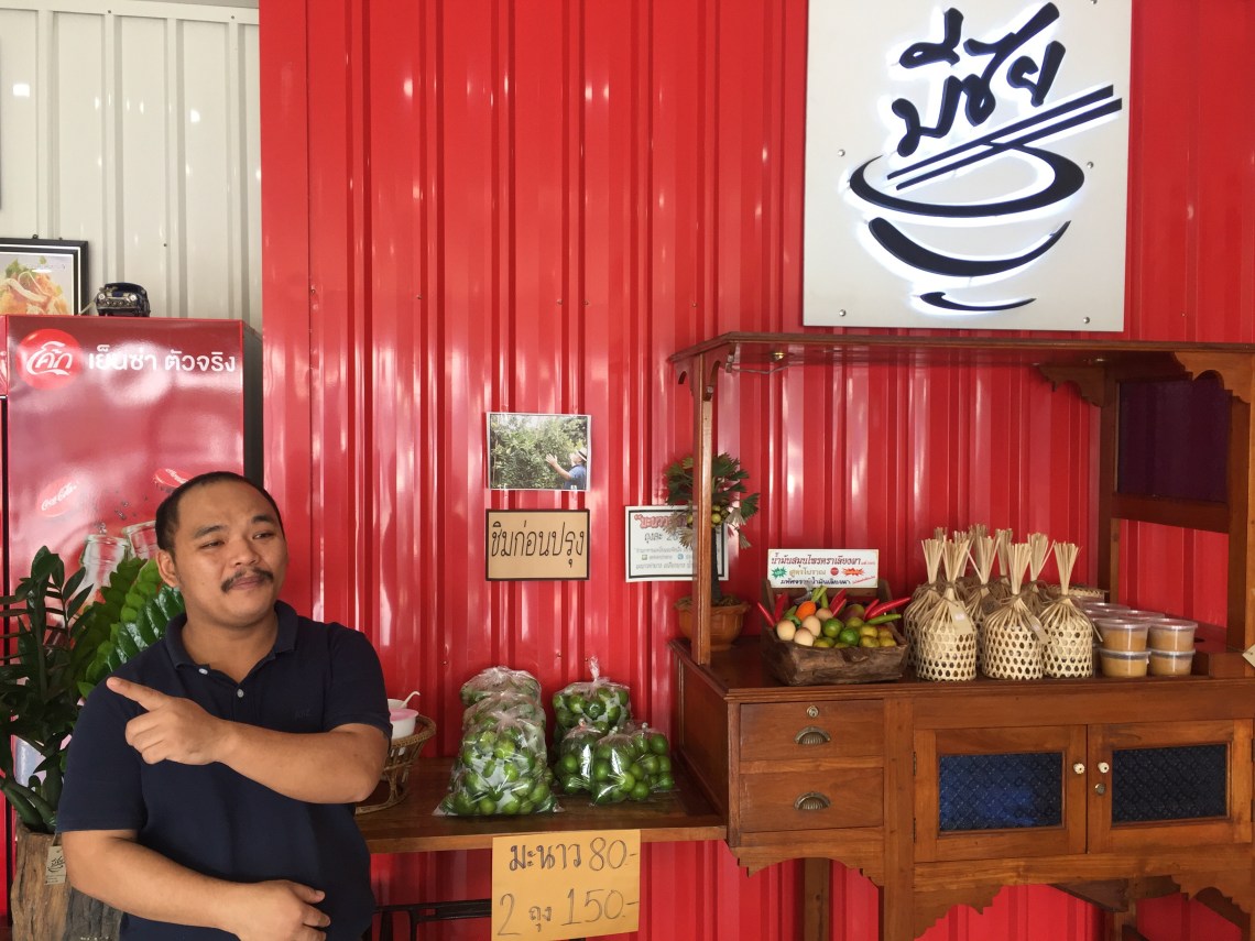 เจ้าของร้าน หนุ่มแน่น แน่นอนชื่อ มีชัย นามสกุล จันทบุตร เคยเปิดร้านก๋วยเตี๋ยว ที่ ราชบุรี พ่อทำสวนมะนาว10ไร่ ที่ท่ายาง ตัดสินใจกลับมาเปิดร้านที่ชะอำ อยู่ใกล้ๆกับพ่อ