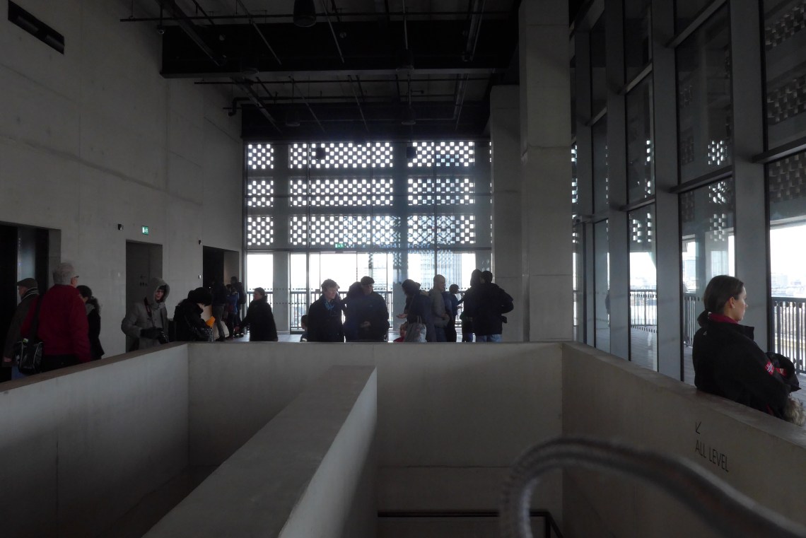 The Tank แปลงเป็น New Art Galleries สำหรับperformance, interactive art และ videoTate Modern ด้านหน้ามีหอคอยสูงตระหง่านเป็นสัญลักษณ์ ด้านหลังมีป้อมปราการแข็งแกร่งให้ขึ้นไปสังเกตุการณ์ ผมเลือกขึ้นไปสำรวจชั้นบนสุด ชั้น10 ของ Switch House เป็นที่แรก มีมุมกาแฟ และระเบียงออกให้ออกไปชมวิว 360 องศา ได้เห็น โบสถ์ St.Paul’s ที่อยู่ฝั่งตรงข้าม แม่น้ำ Thames สวยงามตระการตา อีกด้านมองไปได้ไกลถึง Canary Wharf ศูนย์รวมธุรกิจการเงินโลก และ สนามฟุตบอล Wembley Stadium ที่นี่เป็นจุดชมวิวที่สุดยอดอีกมุมหนึ่งของลอนดอน และที่สำคัญฟรี ไม่เสียค่าใช้จ่ายใดๆ