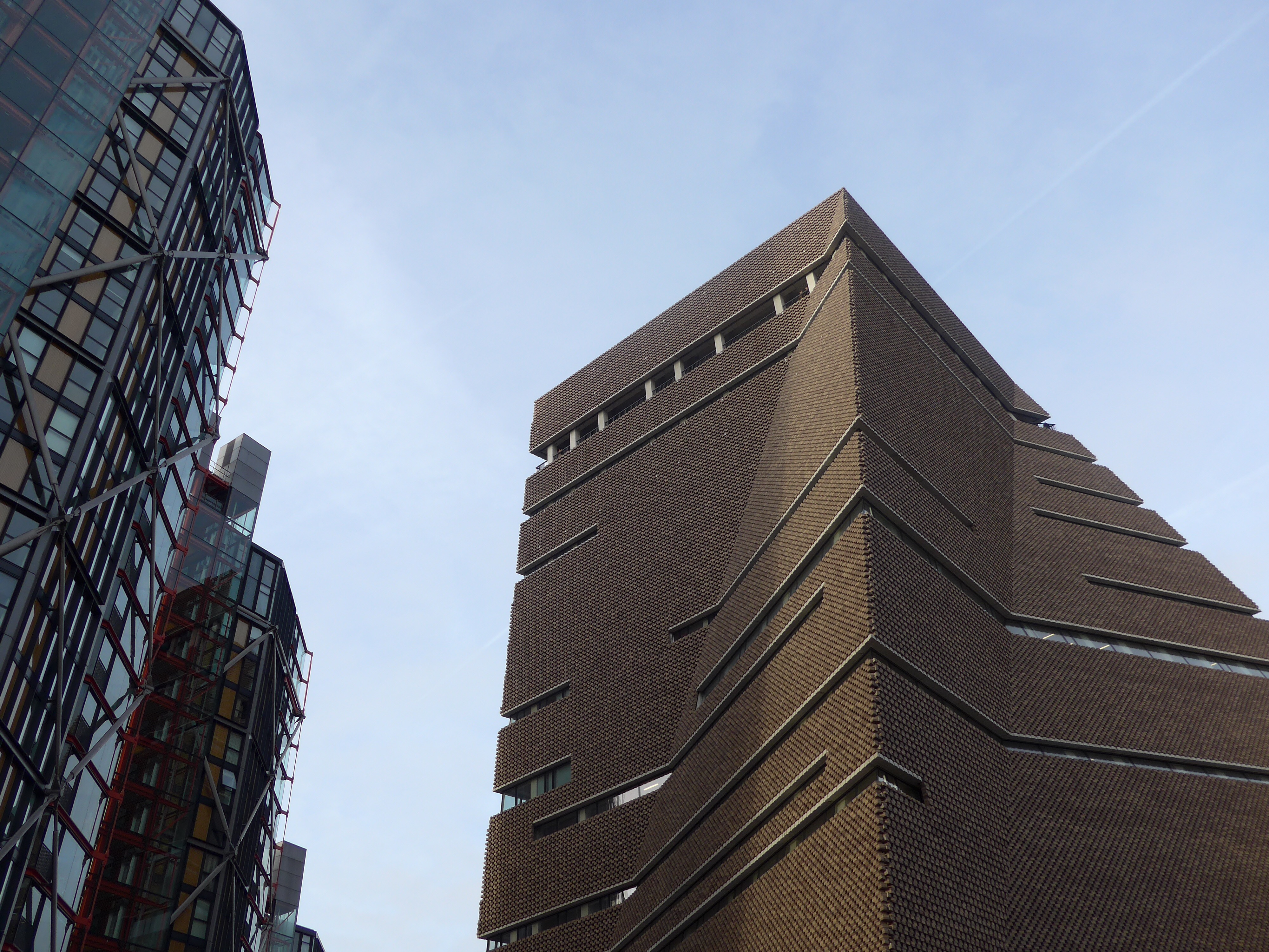 Switch House อาคารหลังใหม่ มูลค่ากว่า 260 ล้านปอนด์ สูง 10 ชั้น สร้างอยู่บนบริเวณคลังเก็บน้ำมันเก่าที่ปัจจุบันเรียกว่า The Tank สถาปนิกตั้งใจออกแบบเลือกใช้อิฐก่อเป็นผนังอาคารเพื่อให้ความรู้สึกเข้มขรึม ไม่ขัดแย้งกับอาคารเก่า แทรกด้วยเส้นสายของช่องกระจกทำให้ดูร่วมสมัย