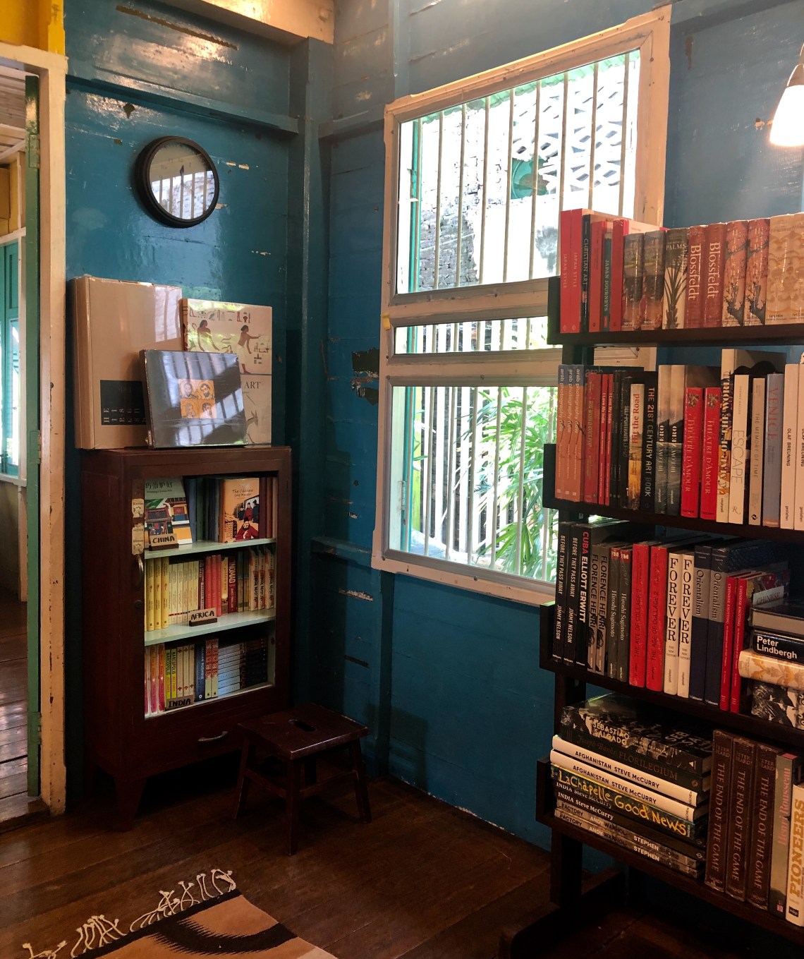 หนังสือ ทั้งหมดเป็นภาษาอังกฤษ ถูกจัด เป็นหมวดหมู่ เอเซีย อาฟริกา ยุโรป จีน อินเดีย ไทย ให้นักอ่านที่หลงรักการดินทาง ได้สำรวจ เรียนรู้ หลากหลายแง่มุม จำนวนไม่เยอะ แต่น่าสนใจ เธอคัดสรรหนังสือทุกเล่มด้วยตัวเธอเอง และ ตั้งใจที่จะหมุนเวียน ให้ใหม่ สดเสมอ เพื่อให้คนรักหนังสือได้มาค้นหาบ่อยๆ