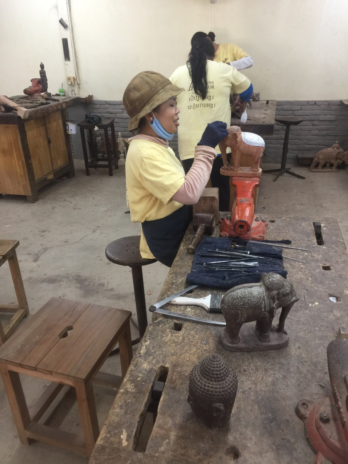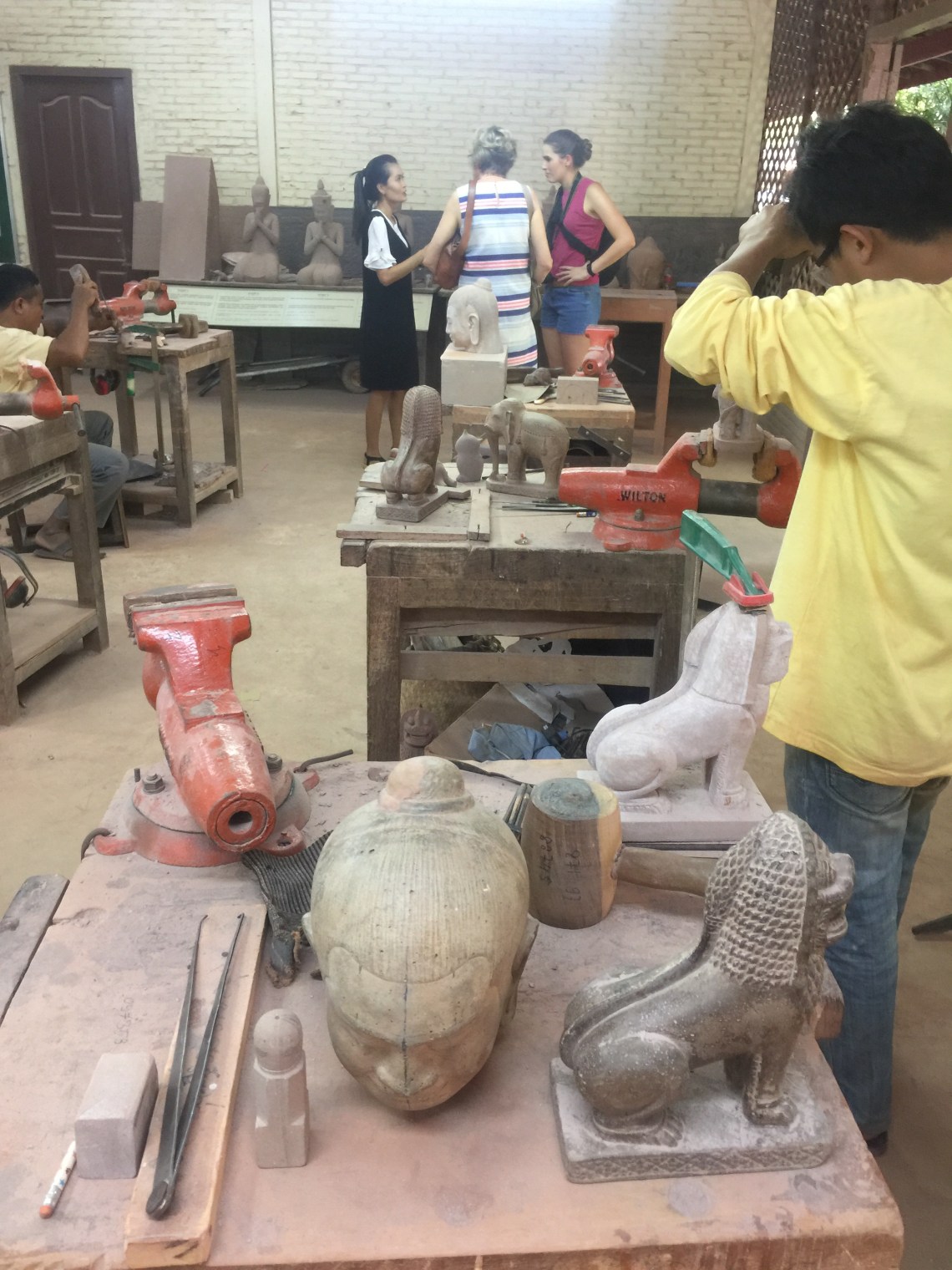 เช่ารถของโรงแรม เข้าเมือง ไป Aritisan Angkor อยู่ใกล้ Old Market อารมณ์คล้าย Jim Thompson ที่น่าสนใจ มี Workshop ของงาน craft ประเภทต่างๆ ให้เยี่ยมชม ก่อนที่จะเข้าไปจับจ่ายใน shop