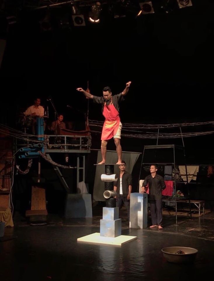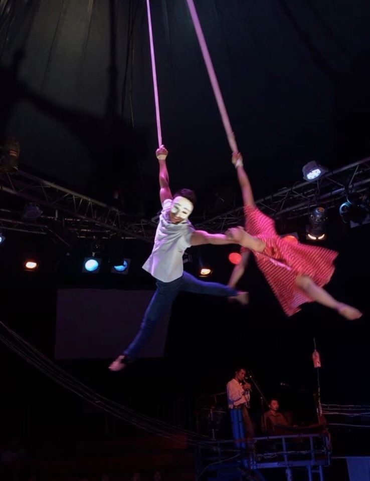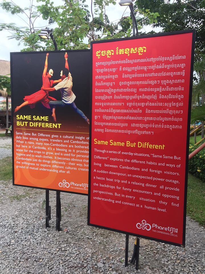 การแสดงชุด Same Same but Different เล่าเรื่องชีวิตประจำวันธรรมดา ของหนุ่มสาวกัมพูชา ผ่านการแสดงกายกรรม ในกระโจมขนาดเล็กจุคนได้ราว 200 คน.