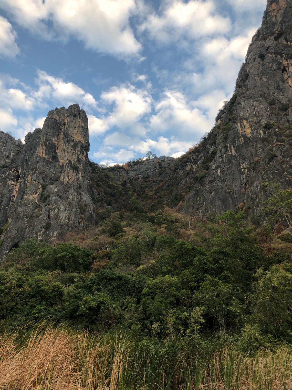 ถ่ายรูปทุกมุมจนฉ่ำใจ เรือออกวิ่งอีกครั้ง สายลมเย็นชื่นใจ สองข้างทางเห็นนกน้ำ บินขึ้นฟ้า คราวนี้เรือแล่นเข้าไปให้เราได้เห็นภูเขาใกล้ๆ เห็นต้นไม้ใหญ่แผ่กิ่งก้านสาขา ชะง่อนผา รูปร่างแปลกตา