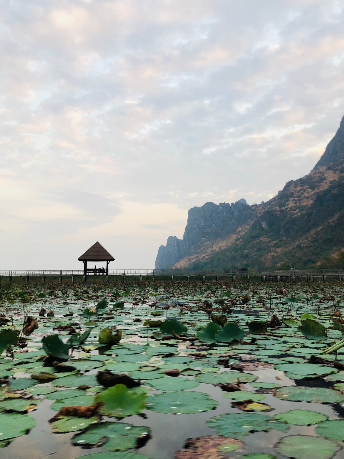 พ้นกอบัว เรือติดเครื่องยนตร์ วิ่งฉิว ค่อยๆเปิดมุมมอง ให้เราได้ เห็น เขาสามร้อยยอด กว้างขึ้น กว้างขึ้น