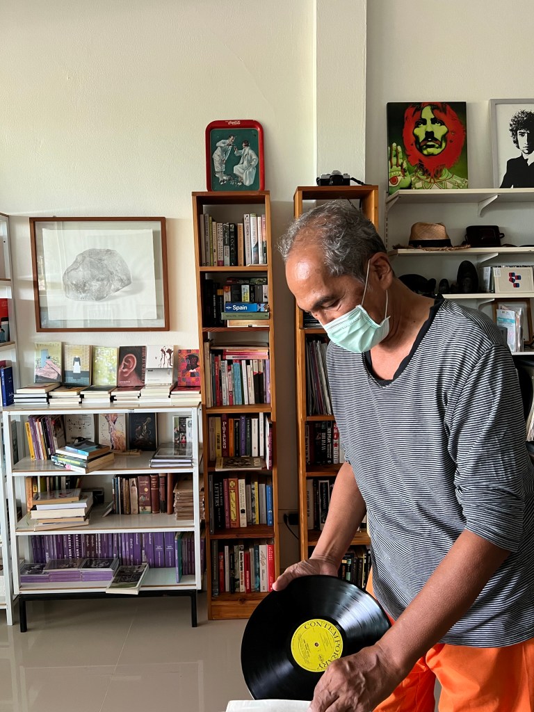 ในบรรดาสัมภาระทั้งหมดที่กลายมาเป็นภาระ หนังสือมีจำนวนมากที่สุด ครั้นมานั่งคิดว่า หากต้องเปิดร้านขายหนังสืออย่างเดียว มันจะอยู่ได้นานแค่ไหนหรือ (เพราะเพื่อนและคนรู้จักเป็นเจ้าของร้านหนังสือหลายคน จึงรับรู้ปัญหา) อย่ากระนั้นเลย บอกตัวเองว่า งั้นมาเปิดร้าน ‘ขายของรักไม่หวง’ ดีกว่า ของรักที่ว่าคือสัมภาระที่เก็บไว้ยาวนาน 50 ปี อาทิ แผ่นเสียง เทป ซีดี อุปกรณ์เครื่องเสียง ลูกปัด ผ้า รูป งานศิลปะ เครื่องประดับ จนถึงเฟอร์นิเจอร์ เป็นต้นว่า โต๊ะ เก้าอี้ และเครื่องครัว แต่ที่พูดมาทั้งหมด ย้ำอีกทีว่าที่มีมากสุดคือ หนังสือ “