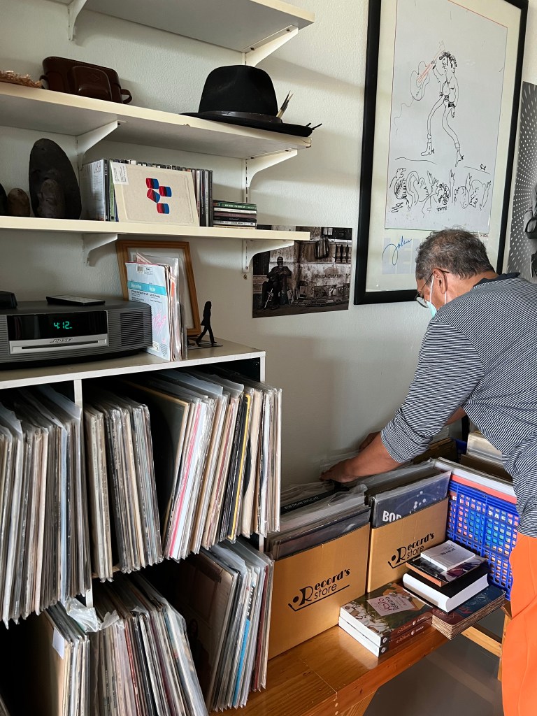 คุณภาณุ เลือกแผ่นเสียงที่สะสมไว้ให้ผมทดลองฟังหลายแผ่น กำชับว่าค่อยๆฟังไม่ต้องรีบร้อน พร้อมให้รายละเอียดว่า ทำไมถึงชอบแผ่นที่แนะนำ