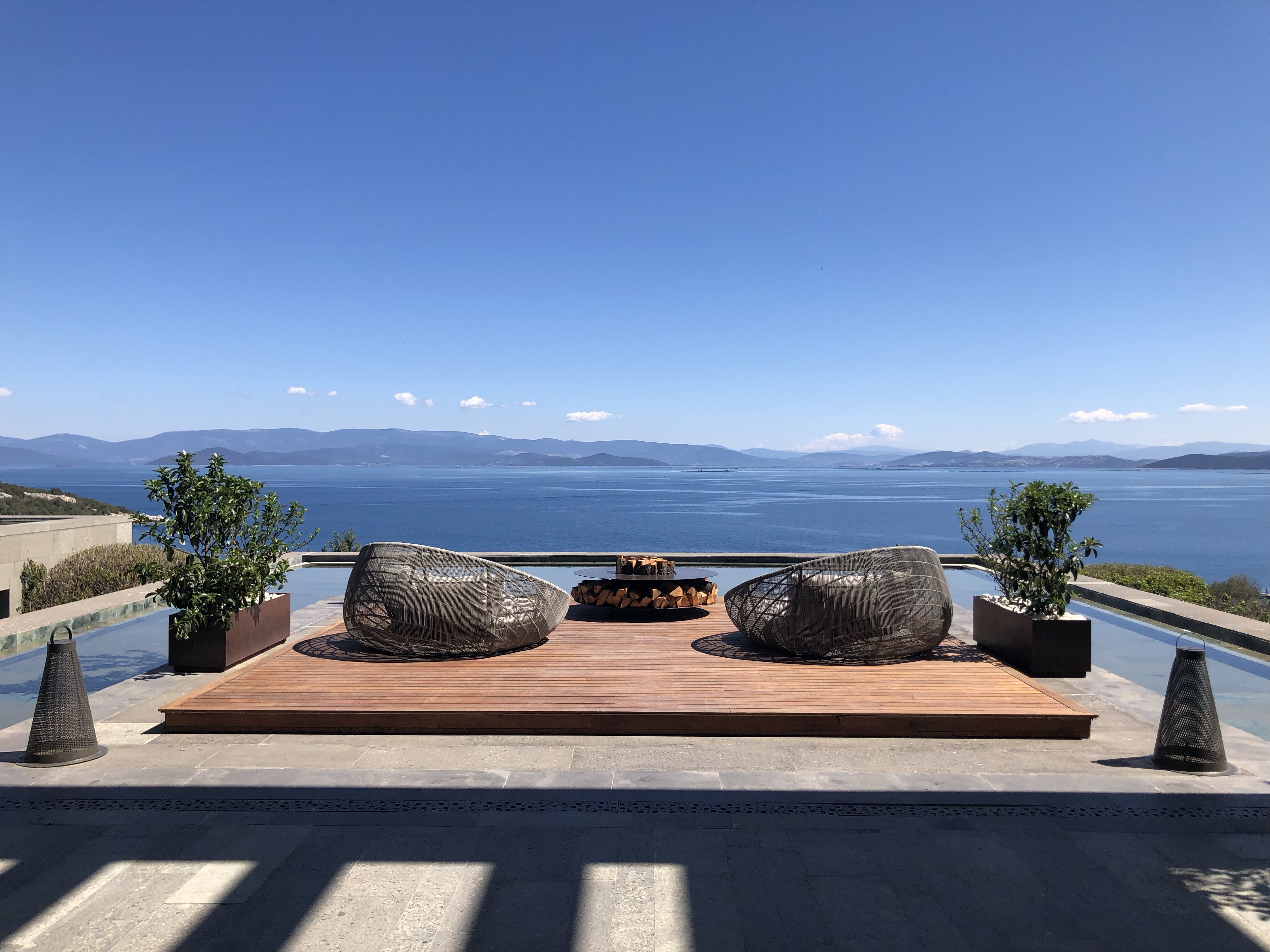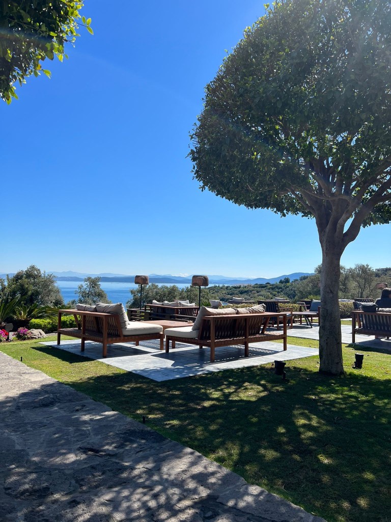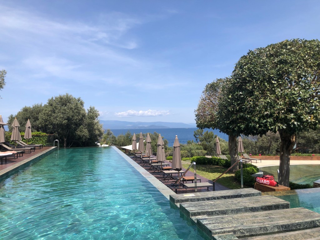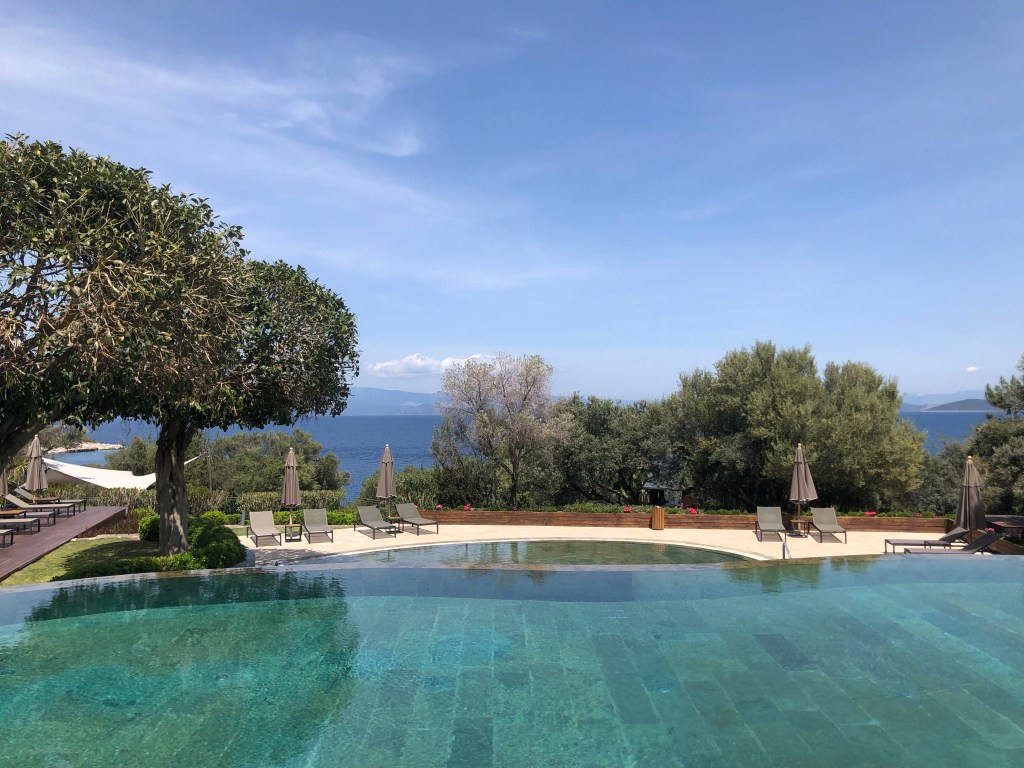 โรงแรม แยกตัวออกมา ตั้งอยู่บนเนินเขา มองเห็นทะเล Aegean กว้างไกล มีชายหาดส่วนตัวทอดยาวในอ่าวเล็กๆชื่อ Cennet Koyu (Paradise Bay)