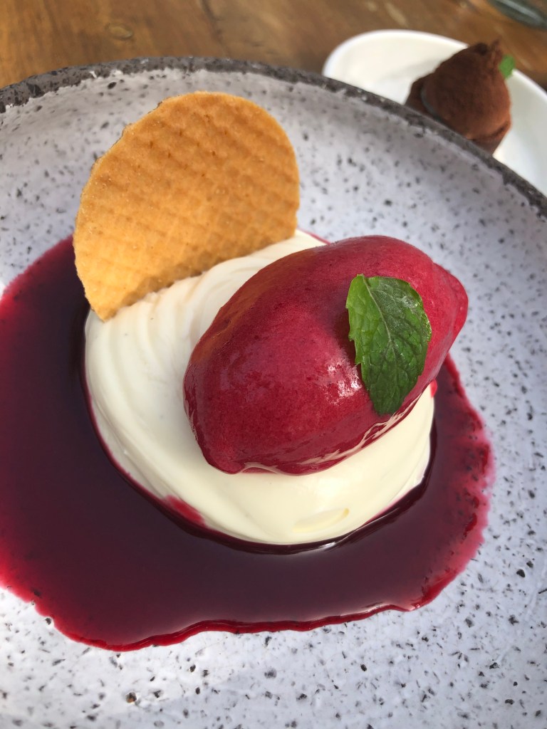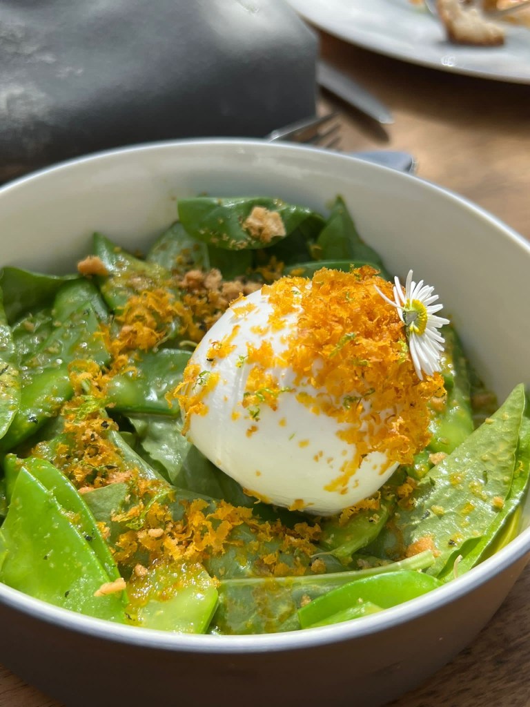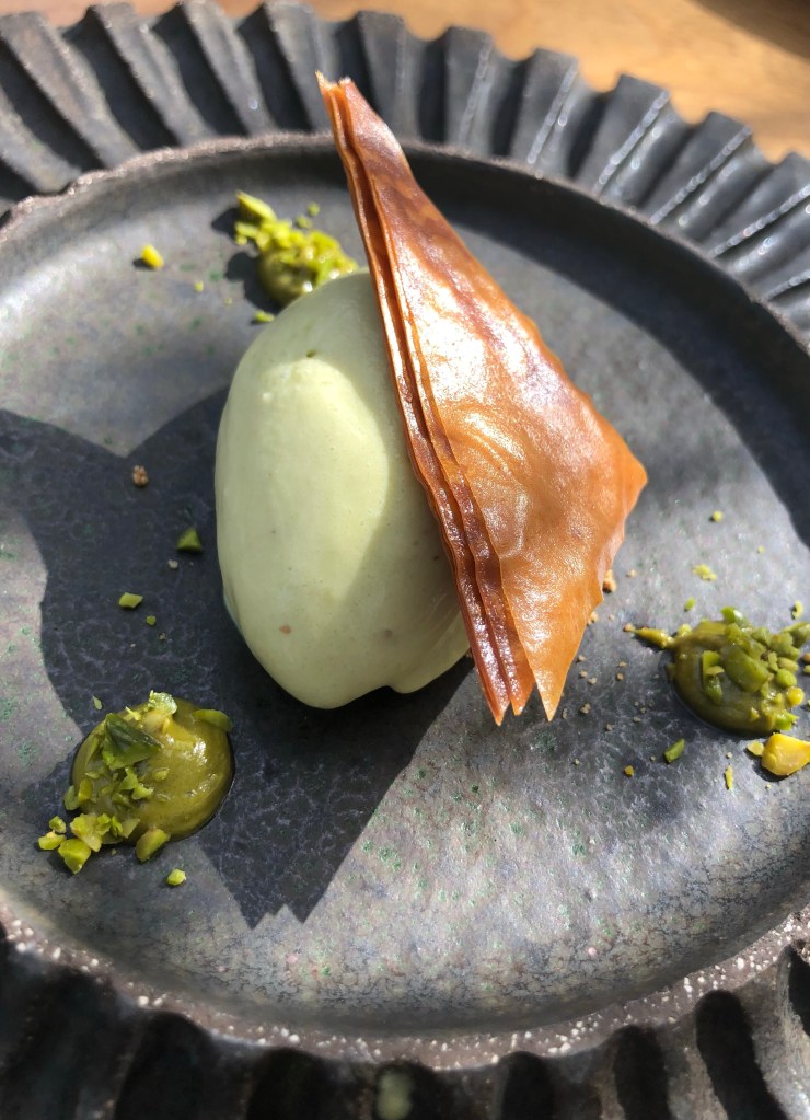 ปลายเดือนเมษายน ลมพัดเย็นสบาย นั่งอาบแดด รายล้อมด้วยต้นมะกอก รายการอาหารของที่นี่ เปลี่ยนแปลงทุกเดือน ตามฤดูกาลที่ธรรมชาติจัดสรร ทุกจาน สด ใหม่ รสชาติดีเยี่ยม